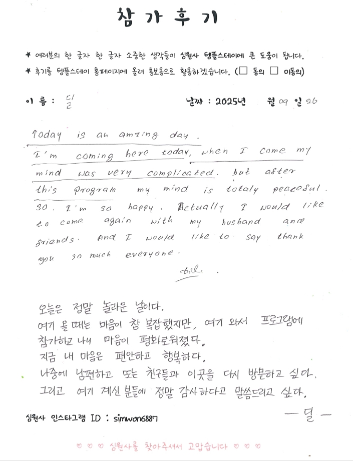 심원사템플스테이 ‘푹 쉬다가이소~’