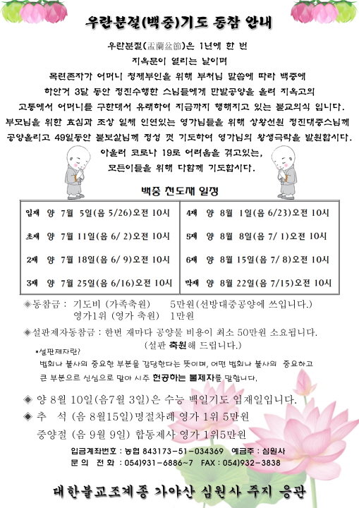 2020년 심원사 템플스테이 만족도 우수사찰 ...