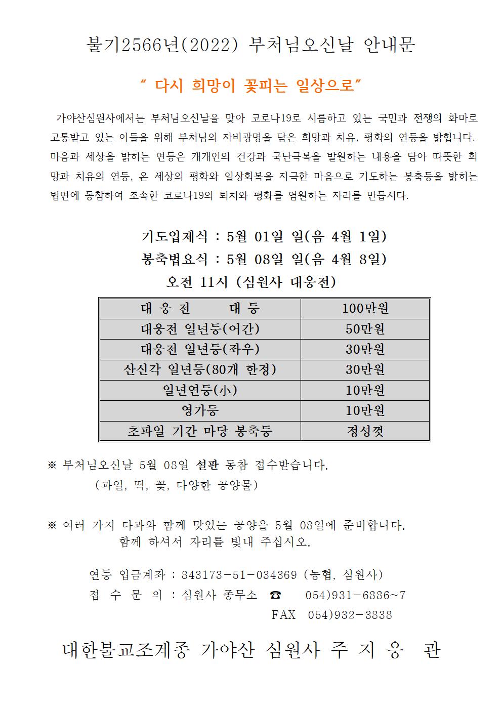 심원사템플스테이 ‘푹 쉬다가이소~’