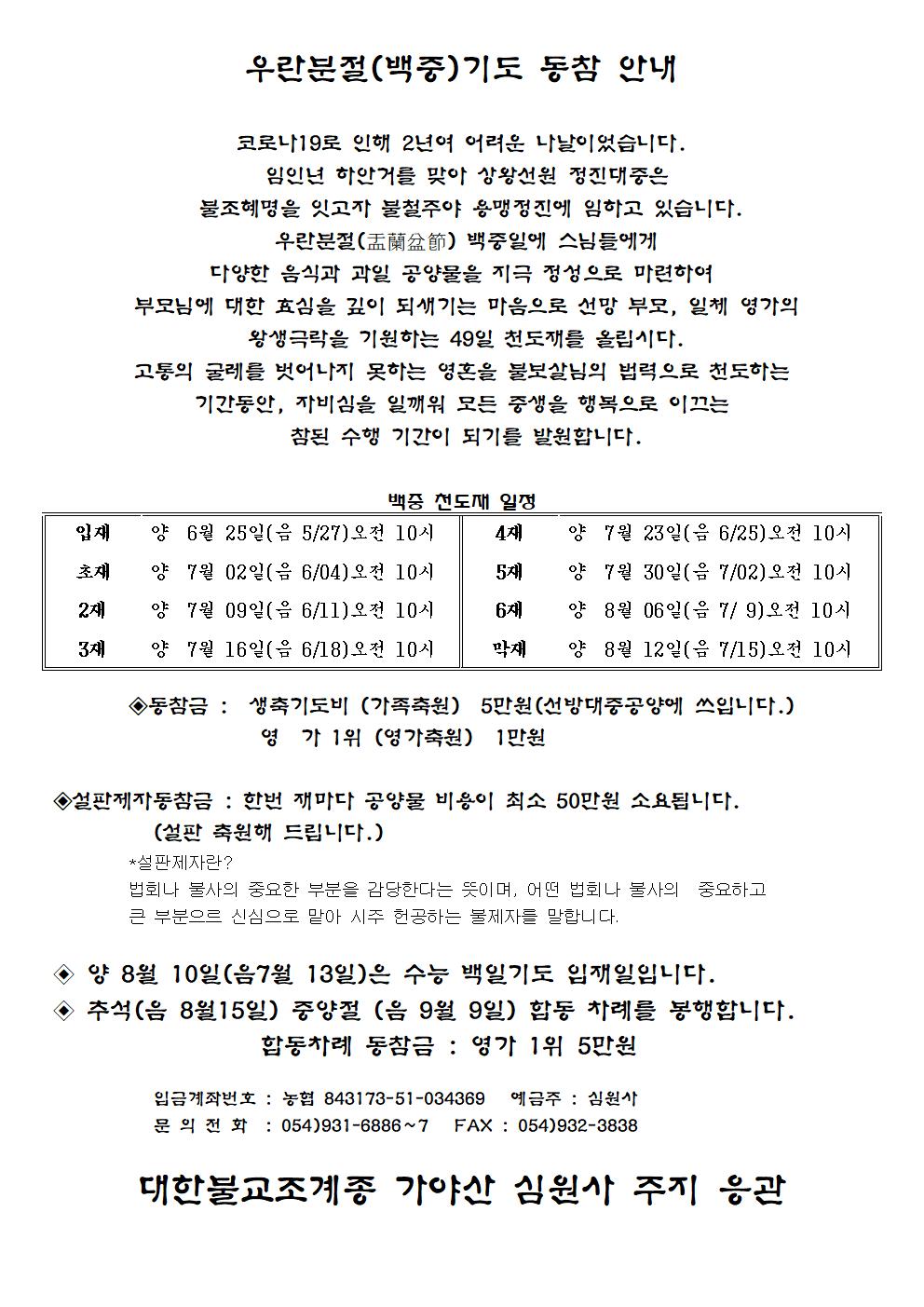심원사템플스테이 ‘푹 쉬다가이소~’
