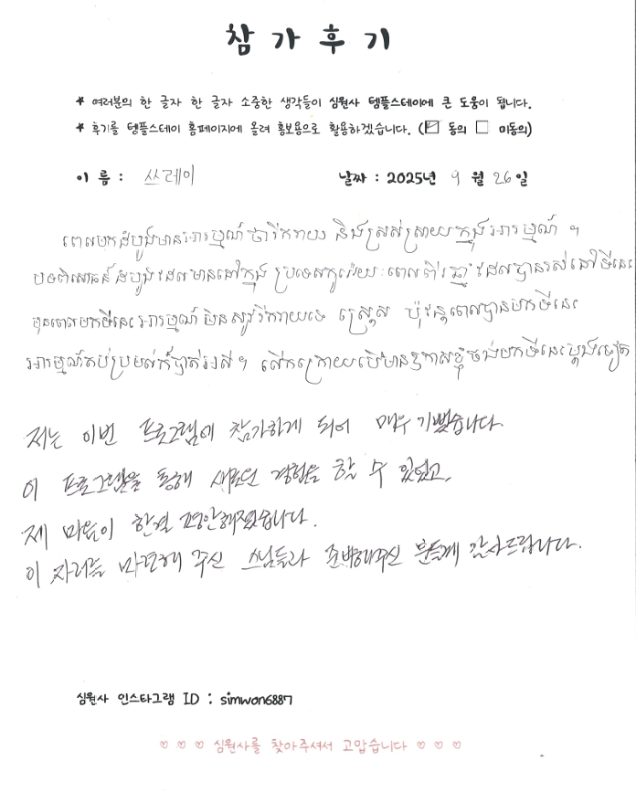 심원사템플스테이 ‘푹 쉬다가이소~’