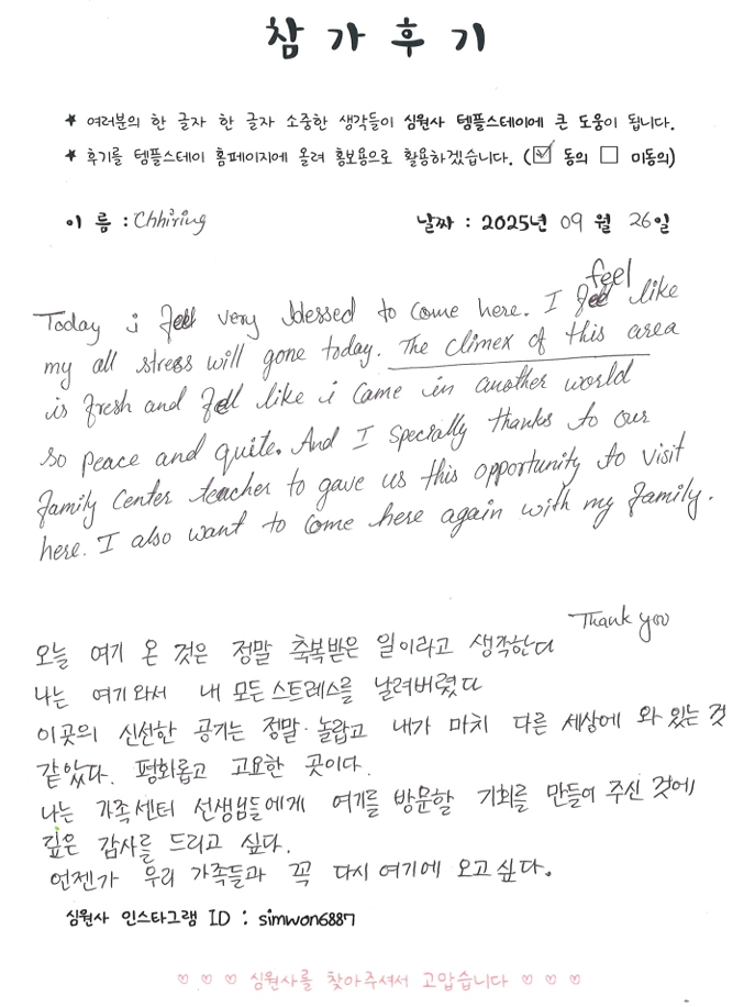 심원사템플스테이 ‘푹 쉬다가이소~’