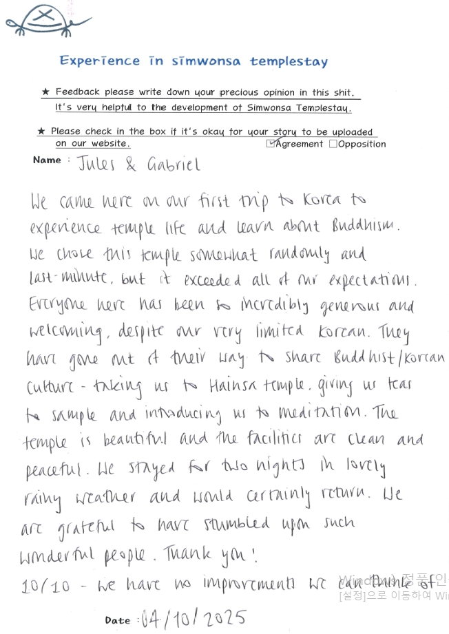 심원사템플스테이 ‘푹 쉬다가이소~’